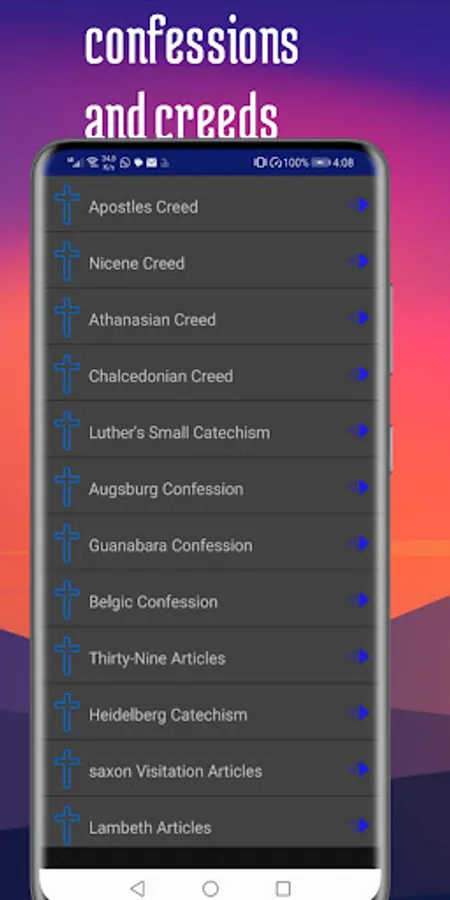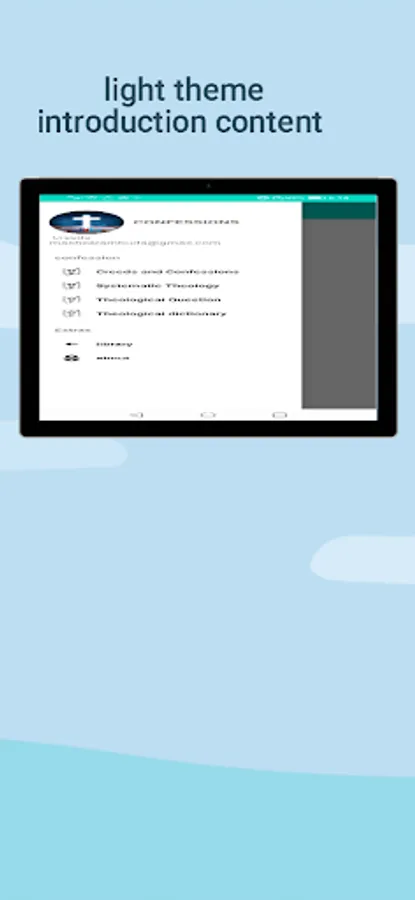 The app contains confession, creeds, theological dictionary, and theological stuff, all different confessions and creeds, systematic theology content, theological dictionary, theological questions, tulips, and Reformed theology. this app is a learning tool is your blackboard. is useful for every Christian. The app offers the extent of reaching a library that contains books and apps that can be downloaded related to theology.
