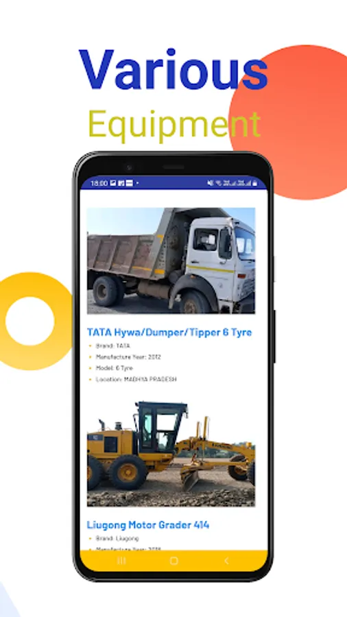 Excavator, dumper, hyva, tipper, motor grader, soil compactor, tandem roller, cranes, milling machine, crawler, mining equipment, construction equipment, infrastructure equipment used in bridge work, road work, railway work, highways, express ways, pipeline project, building projects, government works, private works, rental of heavy equipment