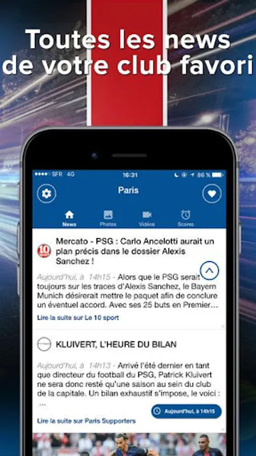 The app offers unparalleled completeness to follow the news of the PSG of more than 60 different content sources (official website, twitter account, unofficial club, national and regional press, specialized sites ...)!
