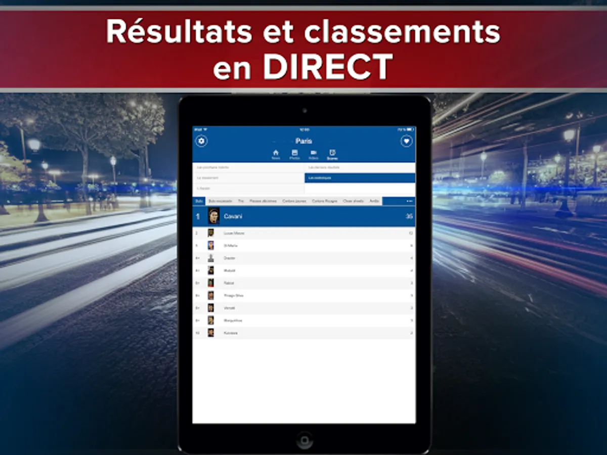 • Be alerted in real time of the results of Paris with the aim alert (name striker included)