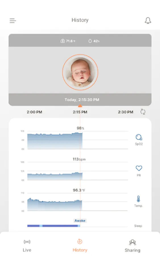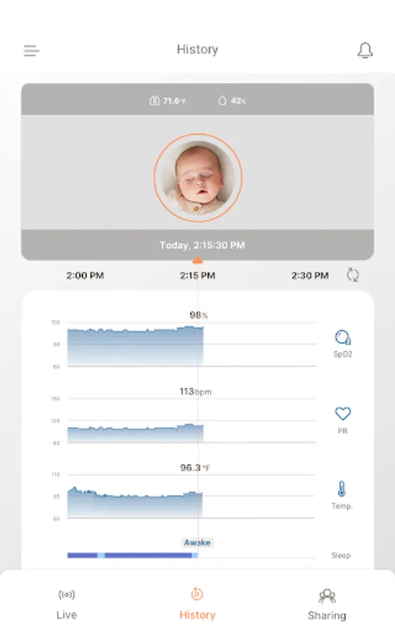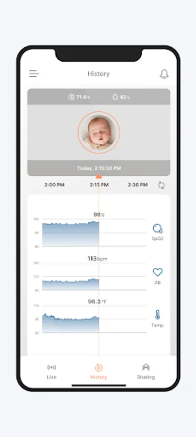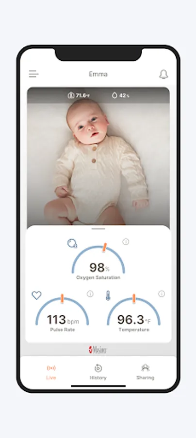 • A cache of additional features to empower your parenting confidence such as a library of lullabies to help unwind baby and lull to sleep, insights on trends over time related to baby’s tracked parameters, positive experiences surrounding baby’s achievements, and sharing capabilities to allow family and friends to join in the joy of seeing and hearing baby.