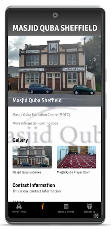 Masjid Quba is a mosque located in Sheffield. The Quba Mosque of Sheffield is aiming to establish a distinguished Islamic Centre so it builds bridges for civilised communications and serves people in Sheffield and surrounding areas.