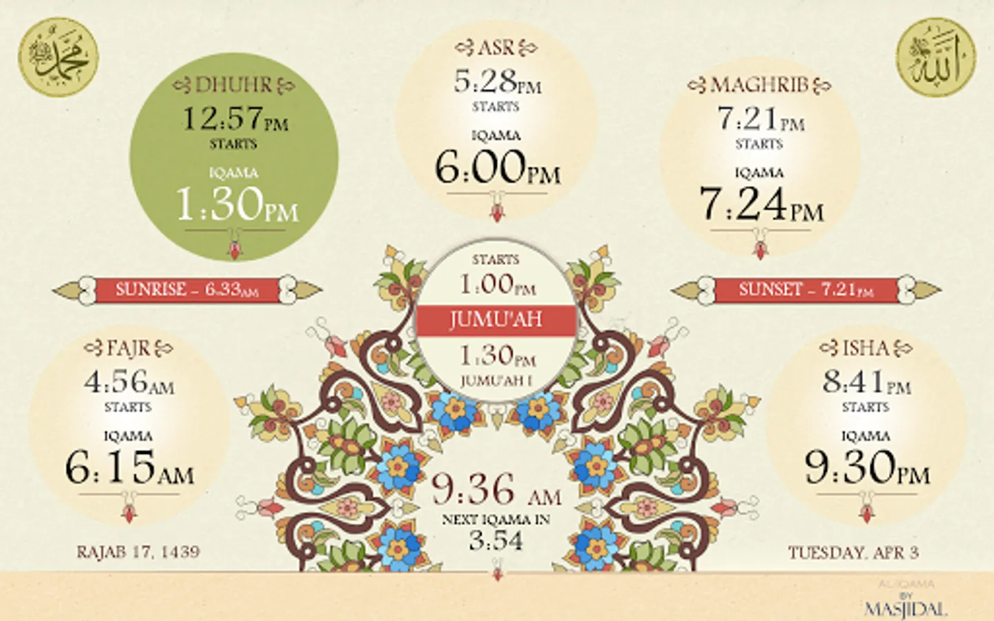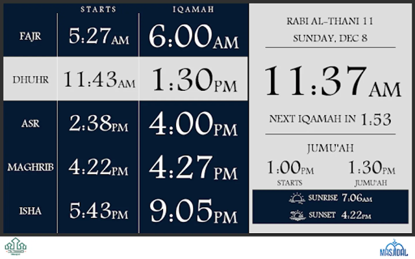 NOTE: This is designed to be run on TV's connected to an android TV box or on Android TVs. For individual users, please download our Athan+ by Masjidal app.