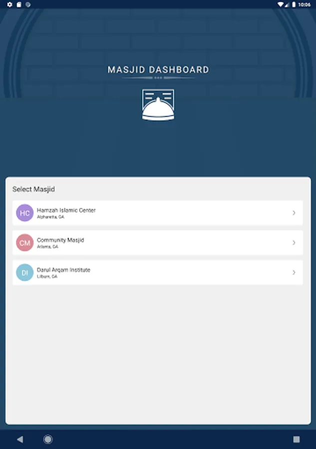 Masjid Dashboard is a central, customizable app for prayer and iqamah times. Masjid that do not have a mobile app can be register by visiting https://www.masjiddashboard.com. Once your masjid is setup Masjid Dashboard will show your masjid's prayer and iqamah times. If you choose to it will notify at Azan and iqamah times.