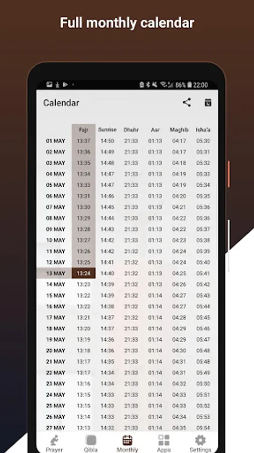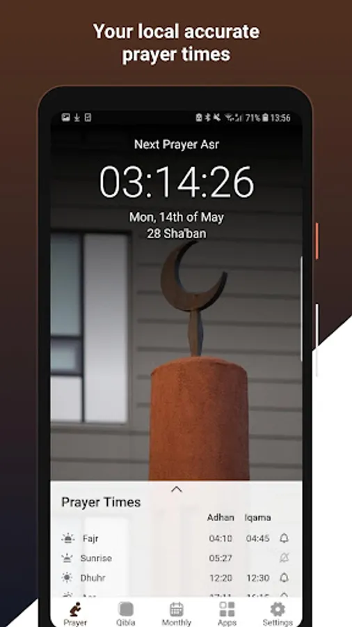 - Notification alert for prayer times