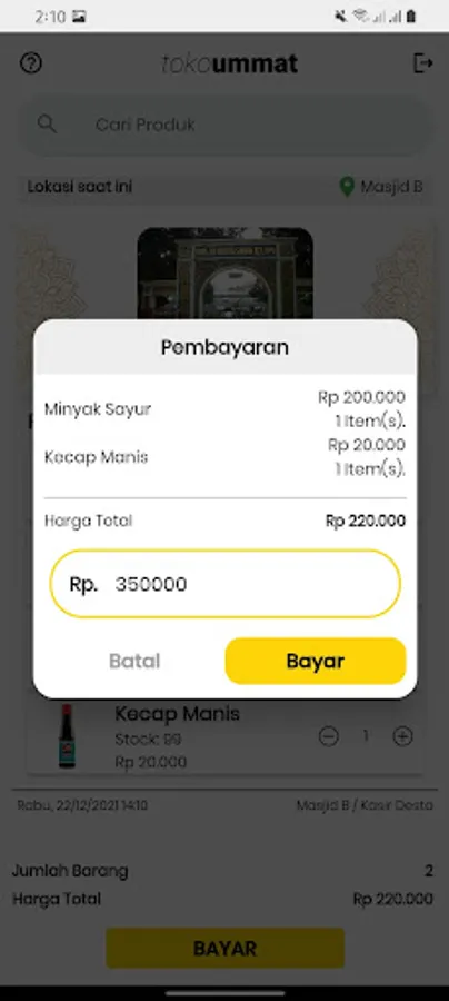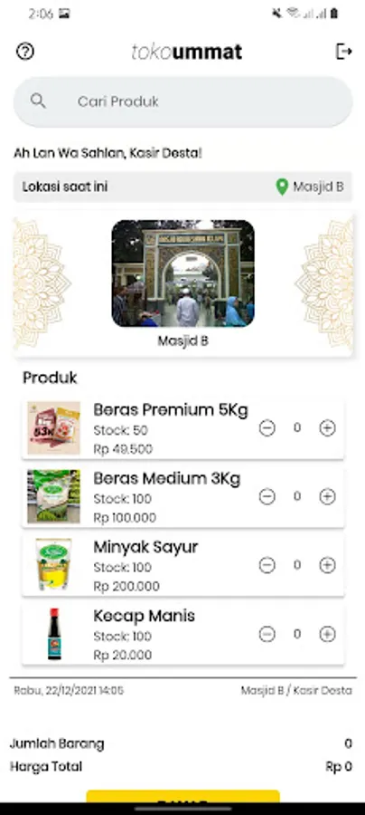 This application makes it easy for the DKM Mosque in conducting buying and selling transactions and checking the stock of goods regularly available at mosques that have been registered in the ummah store.
