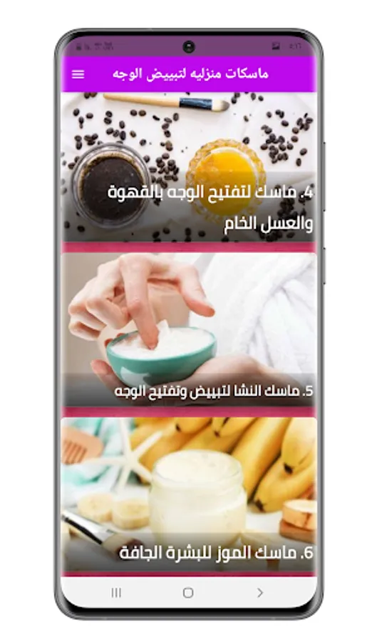 The application contains recipes for masks, natural mixtures, easy to prepare, with effective natural ingredients for the face, body and hair, as well as special recipes for each bride who is about to marry. On the vitamins and basics that the skin needs, maintaining its smoothness and freshness of the skin from dehydration, and giving the skin a smooth texture through important peeling recipes for the skin. There is a description of the benefit of each recipe in the application. The application also contains instructions for use (for oily skin and dry skin)