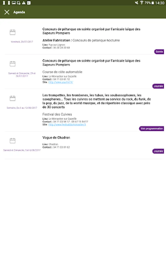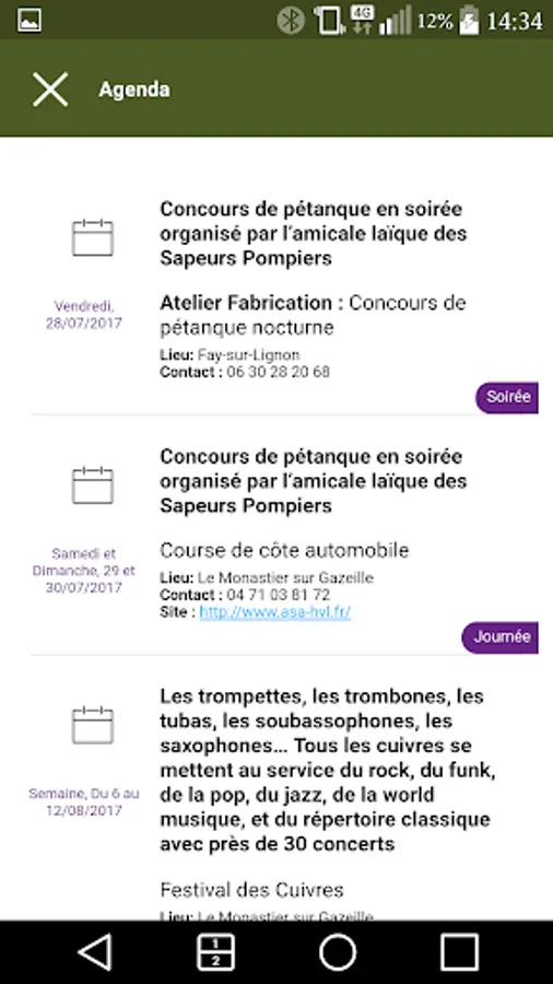 With the "Agenda" section you can enjoy local events relating to nature, such as training time proposed by the EIPC Velay (Permanent Center of initiatives for the environment).