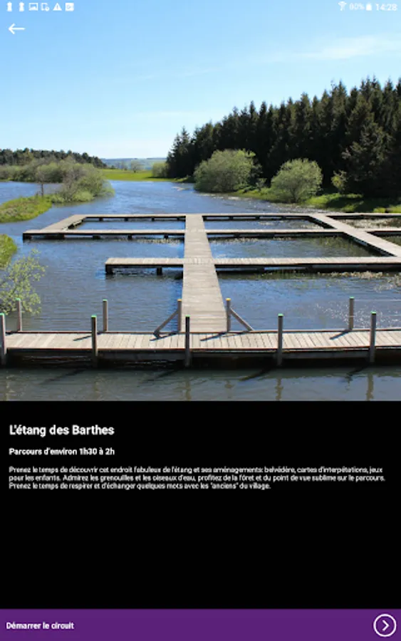 With the tourism application, you can follow, step by step, thematic discovery tours: the village, the countryside and the pond.