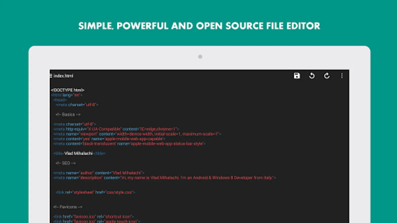 Simple, Powerful and Open Source Text Editor for Android. Built following the latest Android Guidelines to make the experience the most intuitive on the Store, also on Tablets!