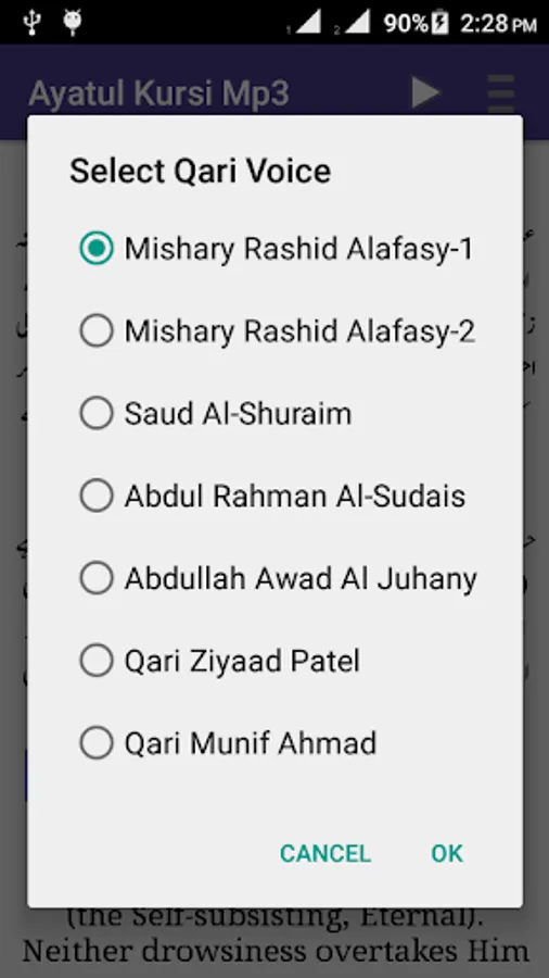 * Audio Voice by 7 different qari (Mishary Rashid Alafasy-1, Mishary Rashid Alafasy-2