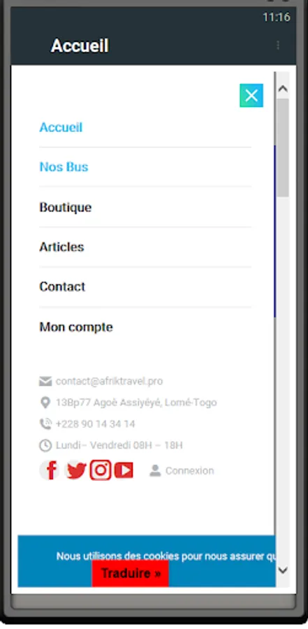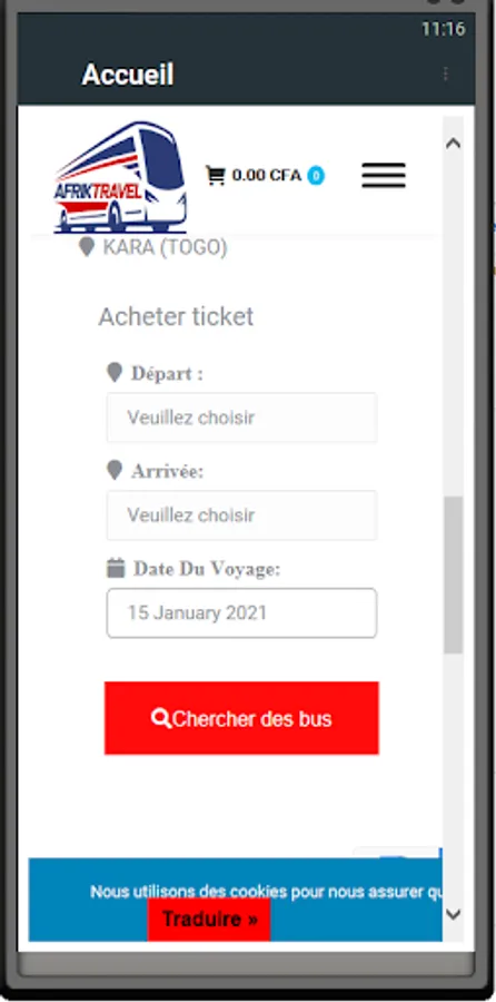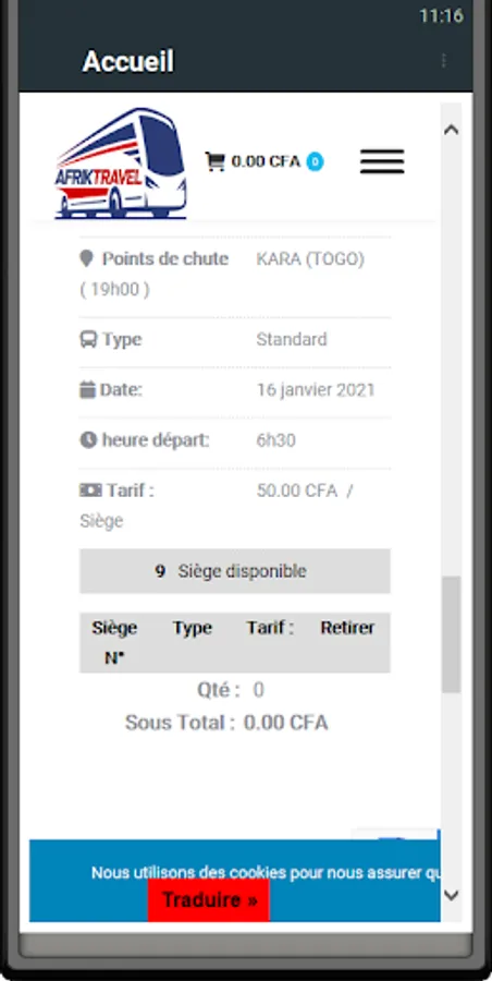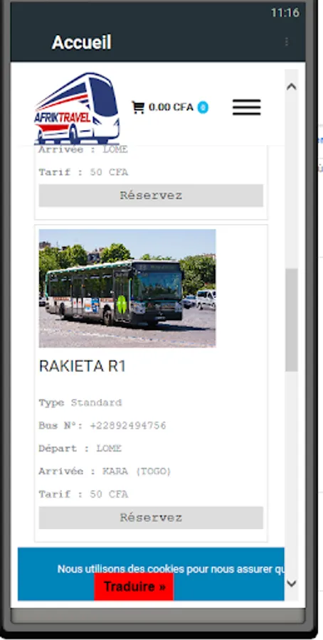 Afriktravel offers you on its platform a range of buses with details on their departures and arrivals. You will be able to choose your bus and make reservations via Tmoney or Flooz.