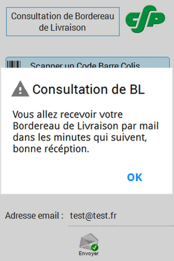 Enter an e-mail address to finalize your request and in the following minutes, you will receive your Delivery Note directly on your e-mail!
