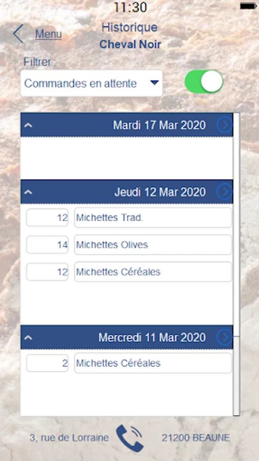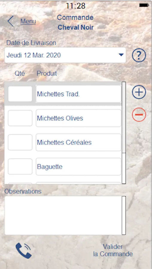 Application allowing professional customers of Beyer's bakery to place their daily orders.