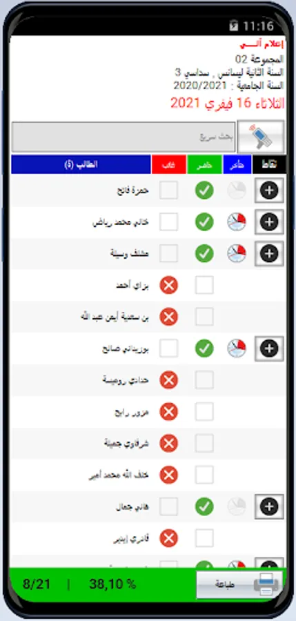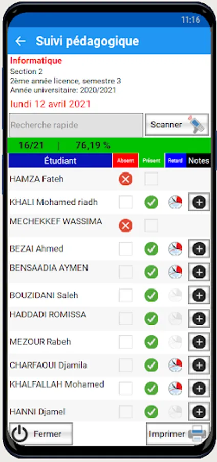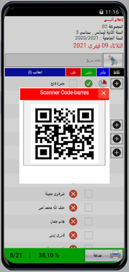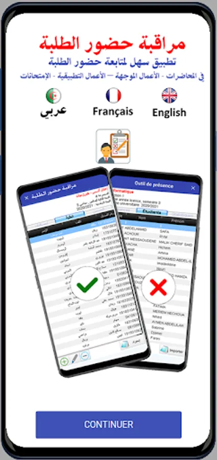 It is a mobile application for university teachers, which aims to help them register the presence of students during the course using modern technologies by scanning the student card automatically or the school certificate, as well as the 'recording all of the student's educational assessments of participation, research, or other educational work, then extracting attendance statistics and grades obtained in a particular semester.