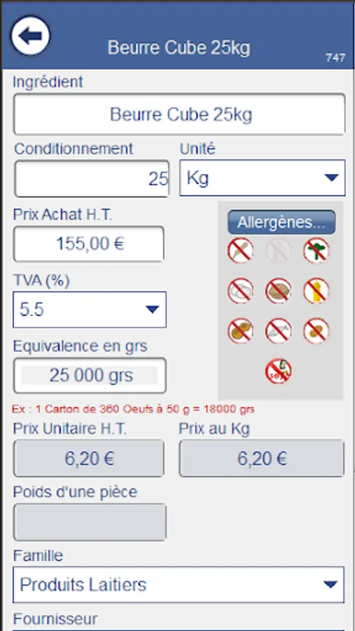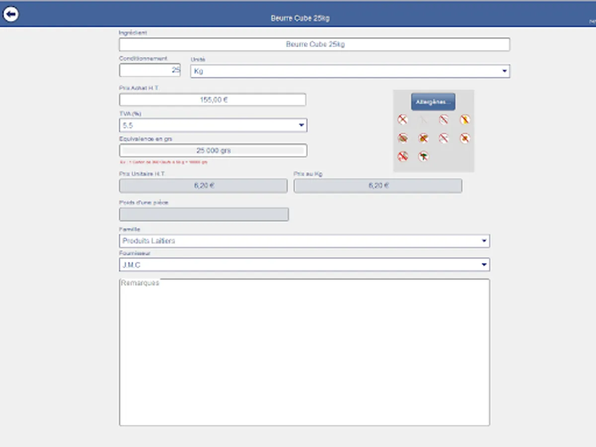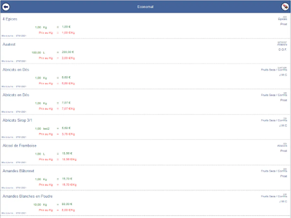 - Real-time update of all recipes as soon as the price of an ingredient changes.