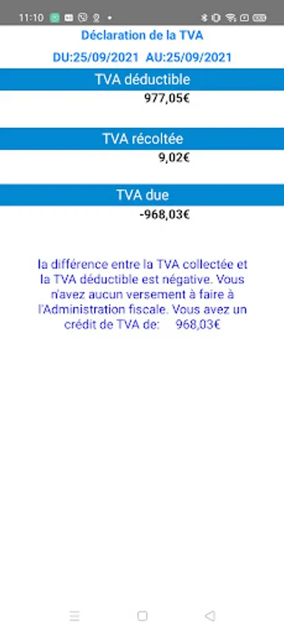 Automatic recording of collected VAT and deductible VAT.