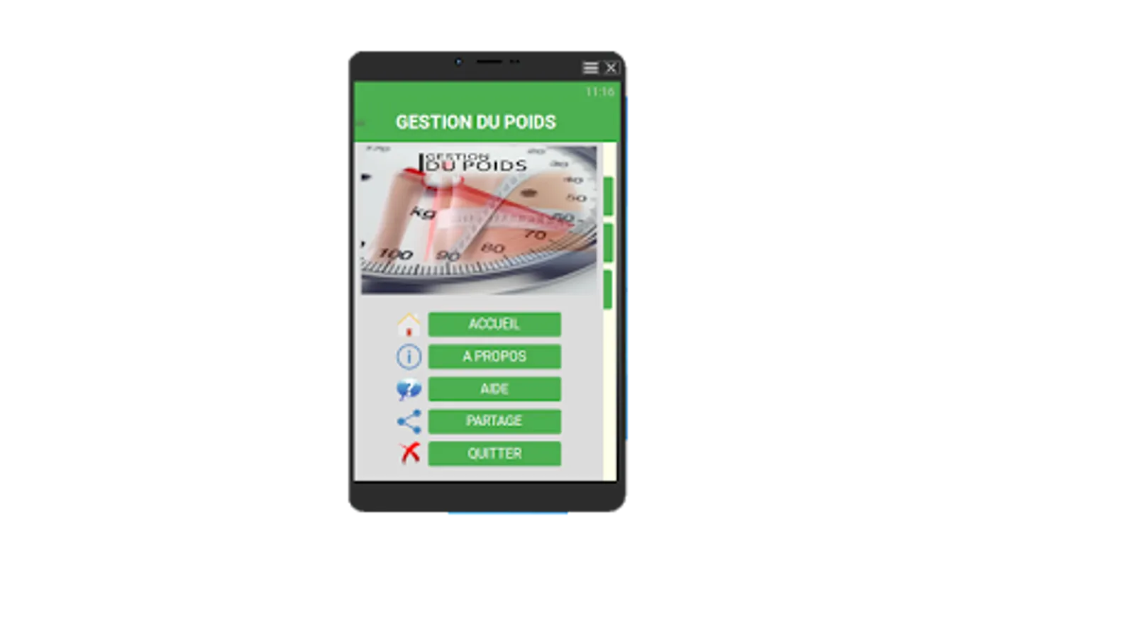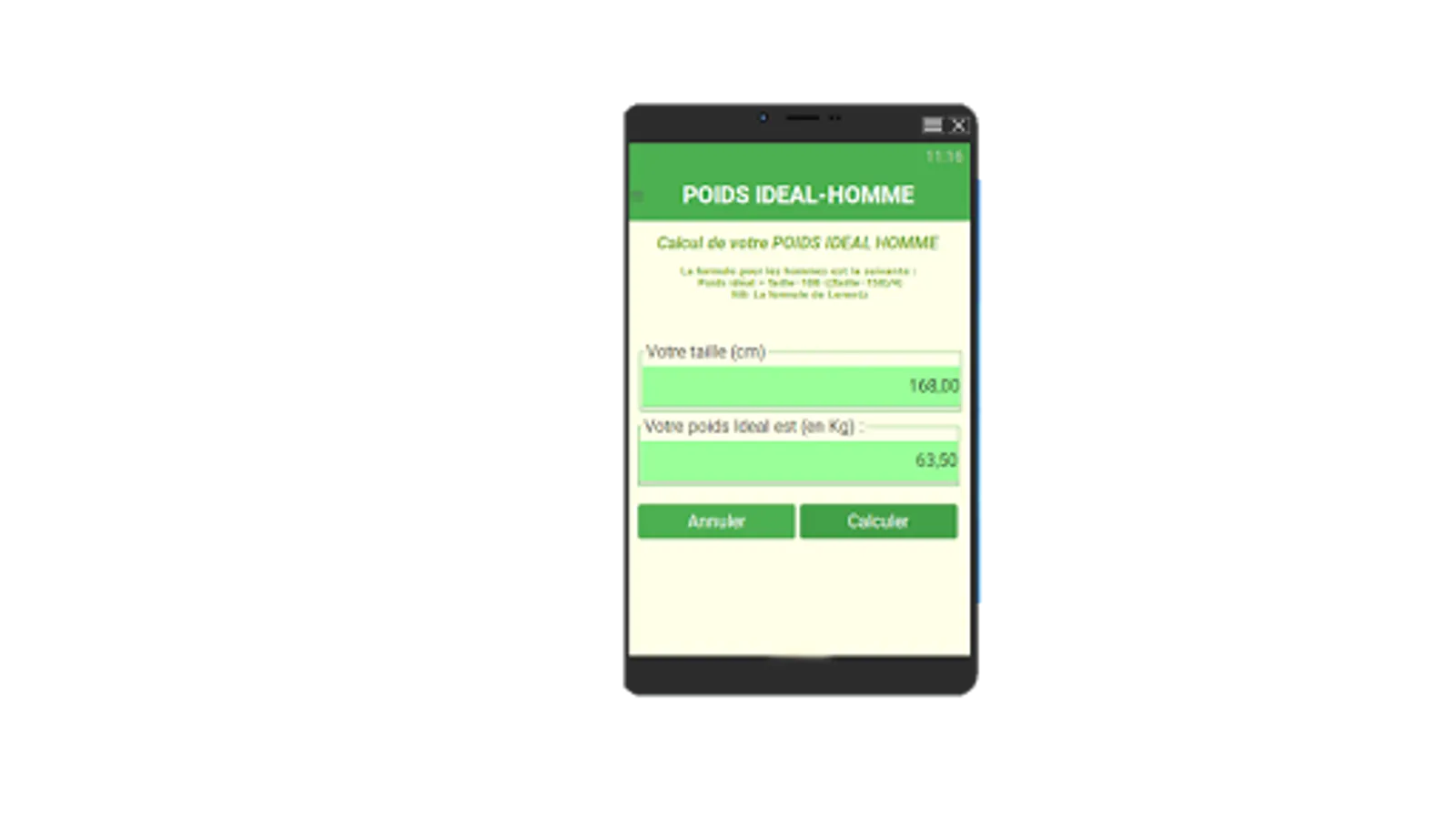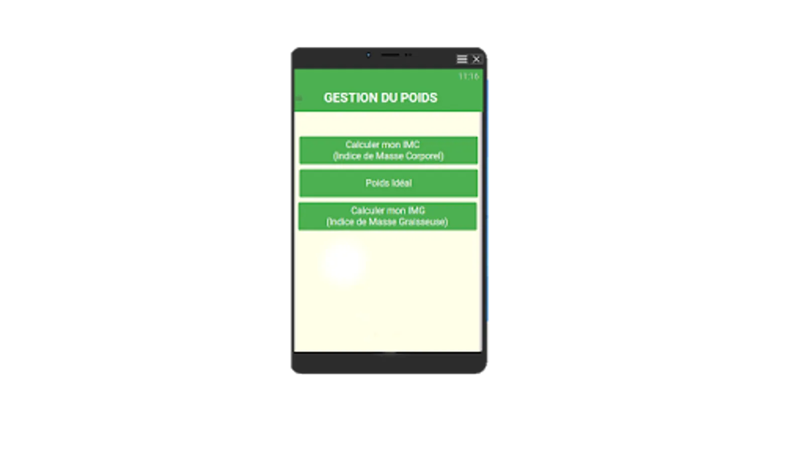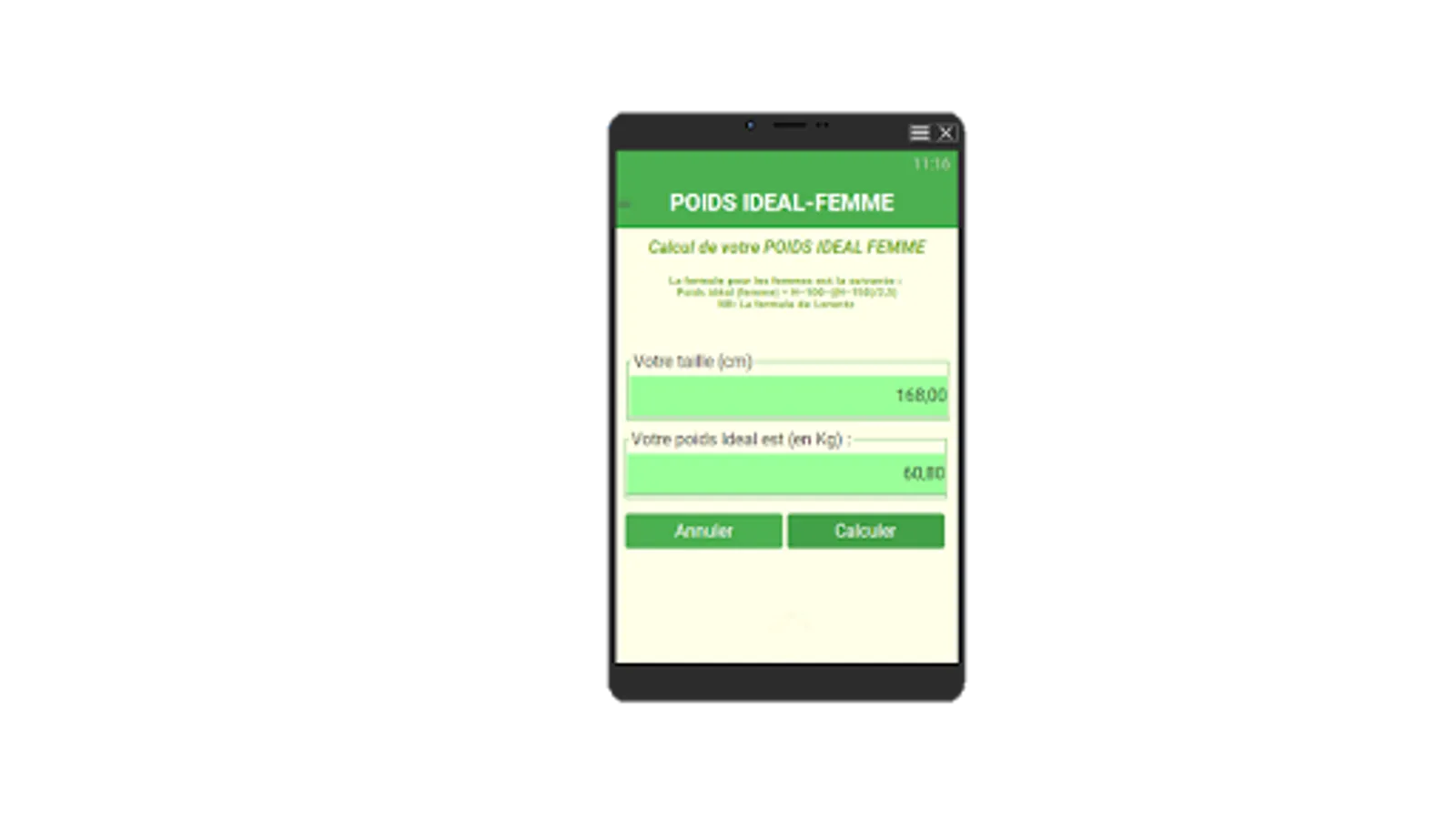 The WEIGHT MANAGEMENT application allows you to have an overall view of your weight in order to always keep in shape. With this application you will have to calculate: