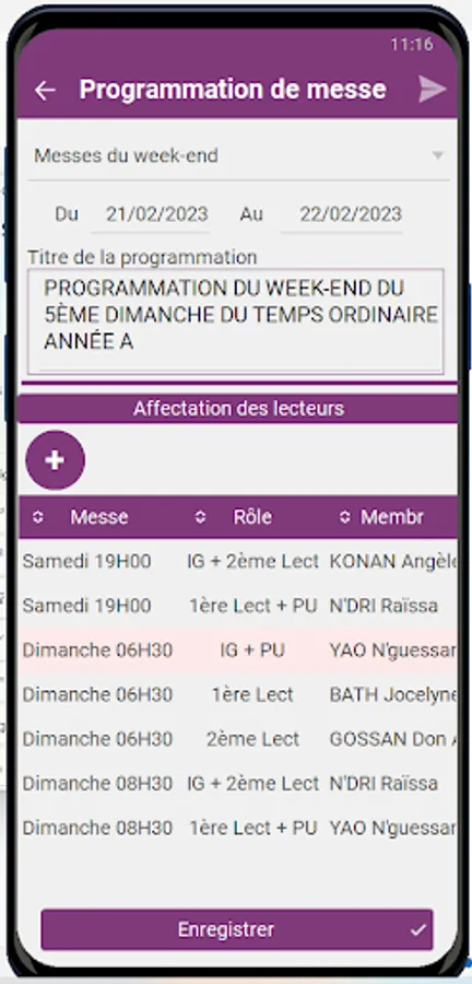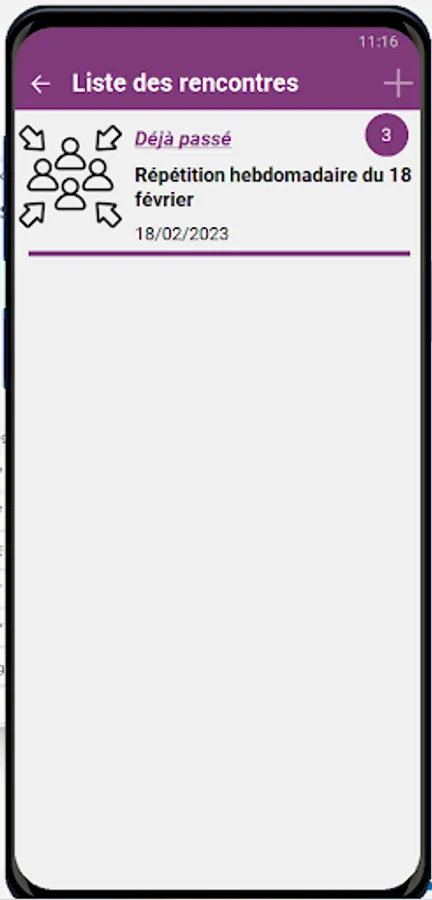 This application allows the registration of the members of the group, the registration of the members present at the different rehearsals and many other things which will be added later.