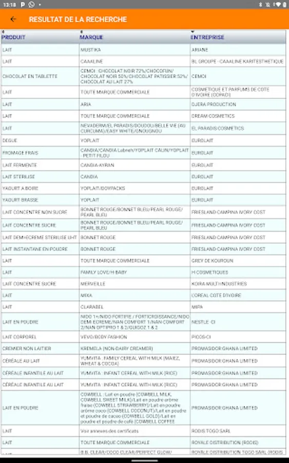 Thanks to a query on the name of a company, the user will know all the products those which are certified by CODINORM