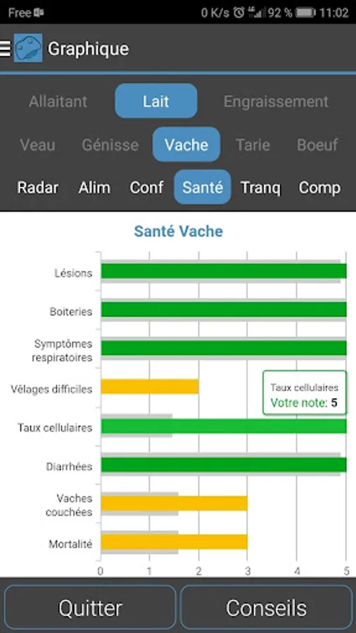 TIBENA bovine milk, a smartphone application developed by the Terrena cooperative with the technical support of CIWF, Oniris, Idele as part of the Sant'Innov project. It has been designed to evaluate the performance of dairy cow farms in animal welfare, based on a series of animal-based measures.