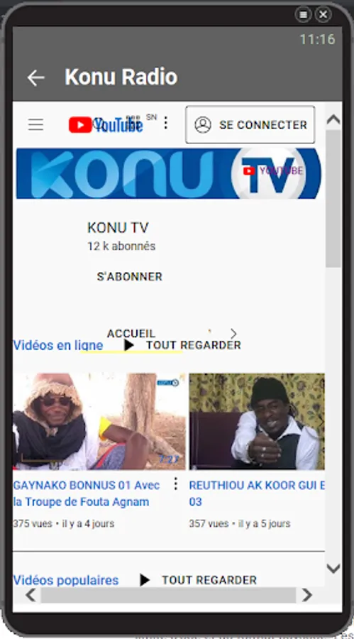 Konu Radio is a private station in Pular, French and Wolof belonging to the El Hadj Omar Tall family. It broadcasts news on Senegal and the rest of the world as well as religious and cultural programs.