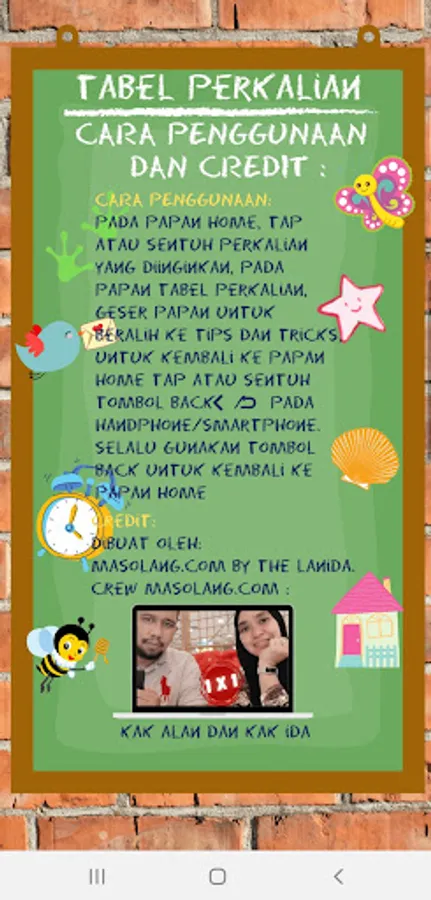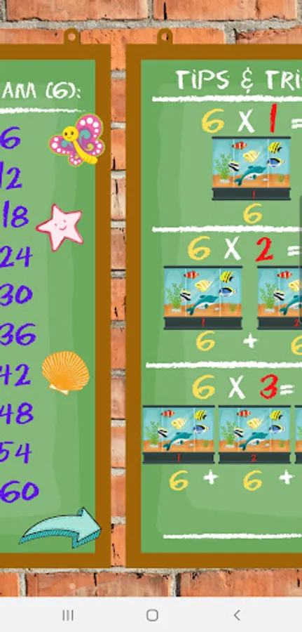 This application contains multiplication tables from 1 to 10 accompanied by tips and tricks to facilitate comprehension of multiplication in the table.