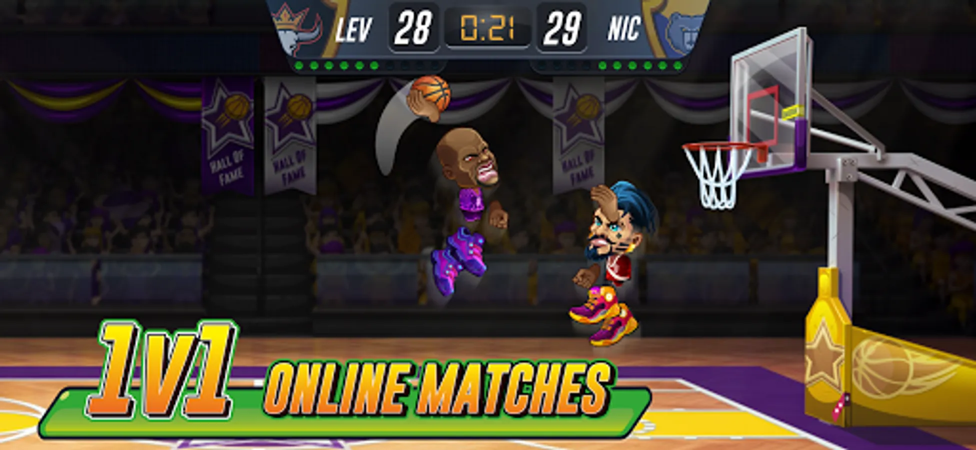 Go for slam dunks, fire off long 3-point shots, use superpowers, win matches and earn cups! Dash and steal the ball from your opponent in head-to-head matches! Each point you score gets you closer to fill the ball basket and get valuable rewards!
