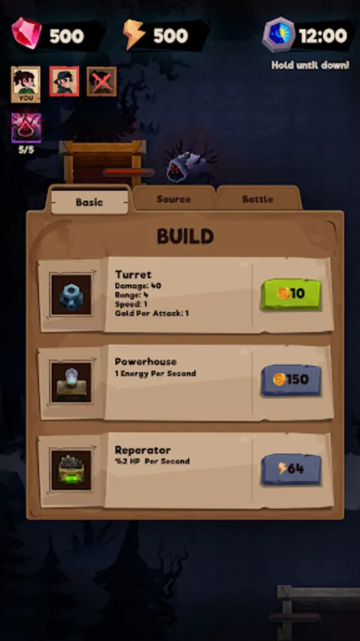Do your gold and gem economy. There are 3 other players who want to survive by hiding in the rooms and there is one monster. The monster really wants to break down the doors. Buy a turret, upgrade your door, then monster has to run away!