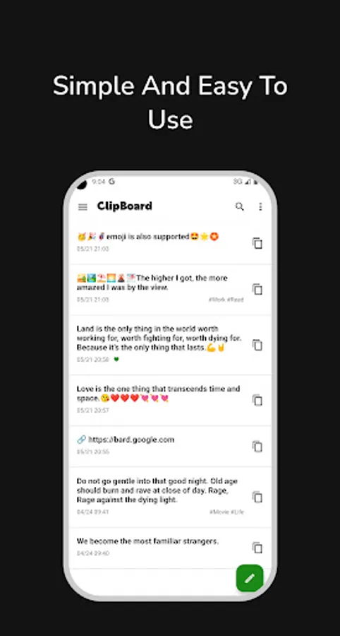One-Tap Copy: With just a single tap, Clipboard effortlessly captures and stores your selected text. It doesn't get any simpler than that!