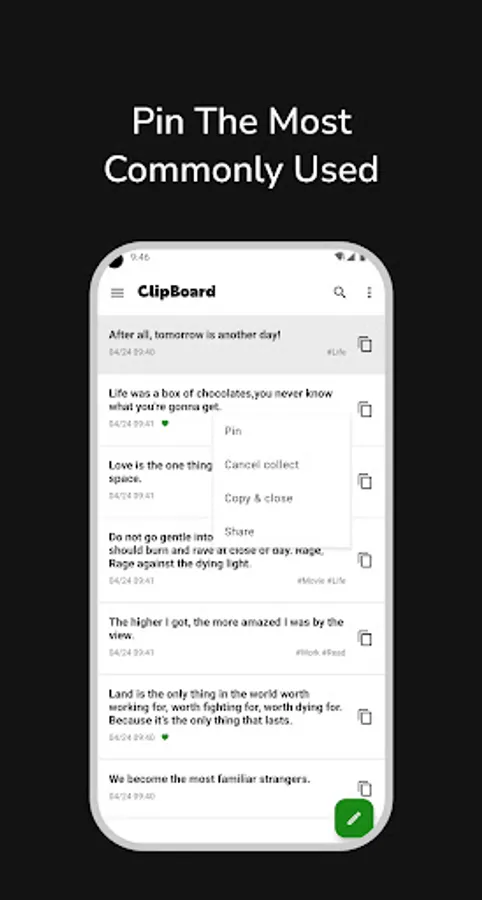 With Clipboard, every time you copy a piece of text, it automatically gets added to your comprehensive and ever-growing list. Picture this: you're working on a project, and you frequently need to use specific phrases, email replies, or even game promo codes. With just a simple copy, Clipboard ensures all your frequently used snippets are readily available at your fingertips.