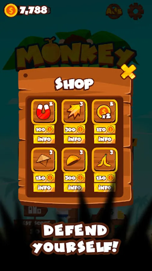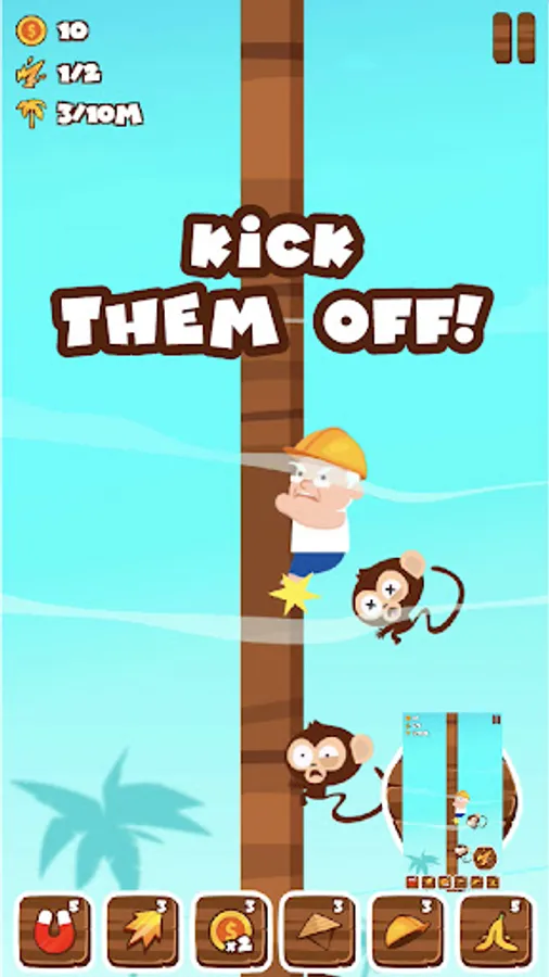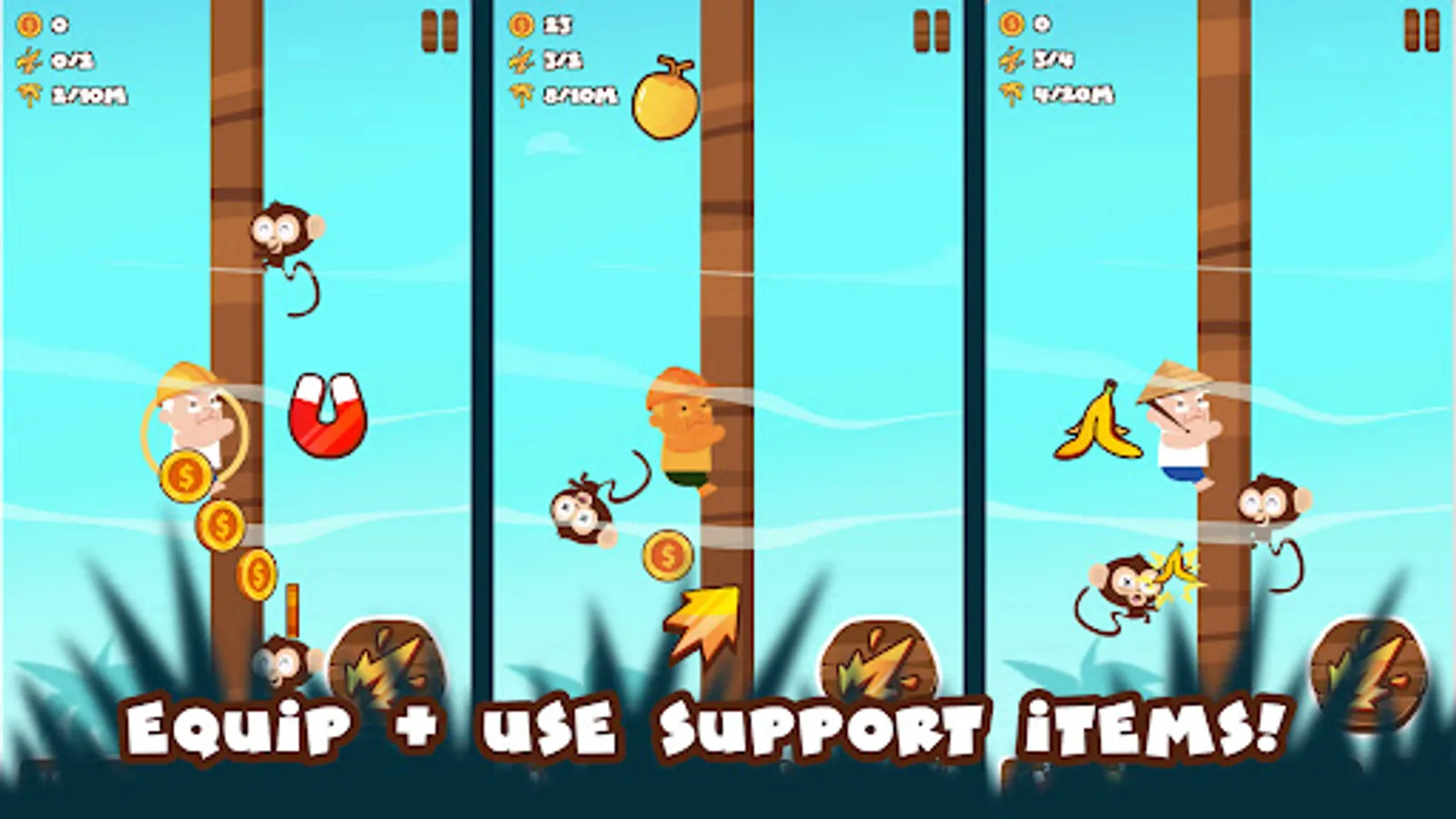 ⭐⭐ Power Up Items: The higher you climb, the harder it gets. As you taptap to dodge the monkeys and coconuts, use the power-up items to help you climb higher up the tree. Use power-ups to protect you from hits that you can’t avoid in time. You can also use the available power-ups to collect coins and even slip off monkeys from chasing you.