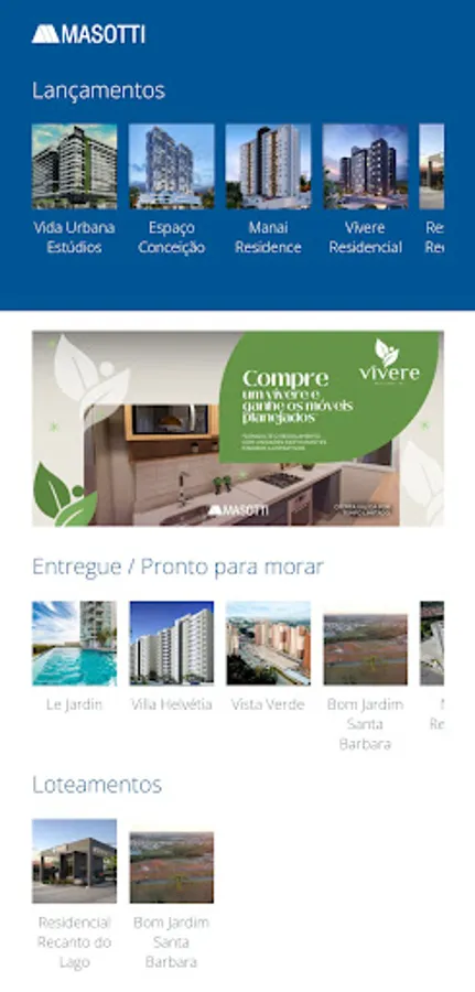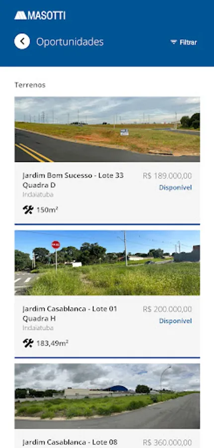 The Masotti application was developed to facilitate the partner broker's day-to-day life by making their portfolio of projects available with consultation of the sales mirror, updated in real time, allowing them to view the availability and status of the units. It is also possible to check the simulation of plots, view photos, videos, plans and other information about the project.