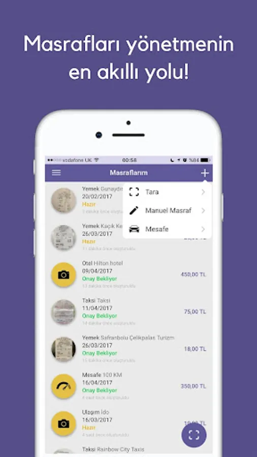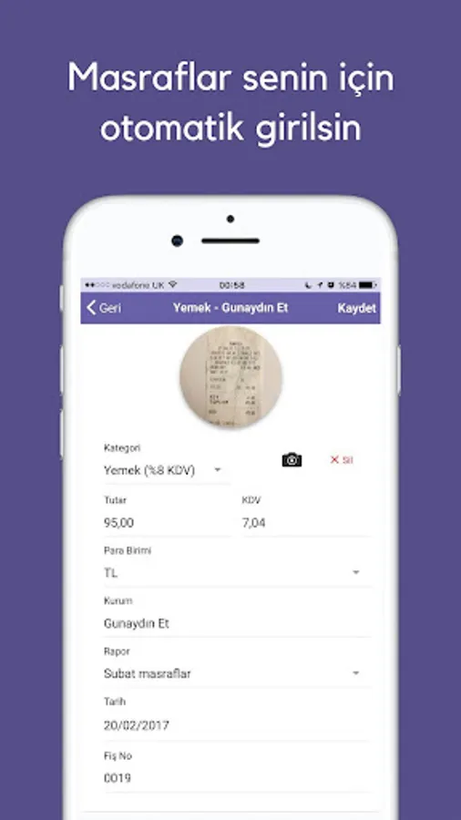 1.Fiş scans and automatically enters the user instead of costs: Masraff's artificial intelligence algorithms scan the chip, it makes the required information and fill in all required fields for the user.