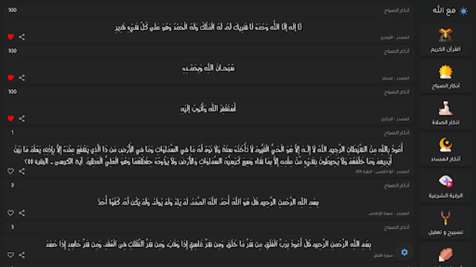 امكانية مشاركة الاذكار و الآيات في مواقع التواصل الاجتماعي