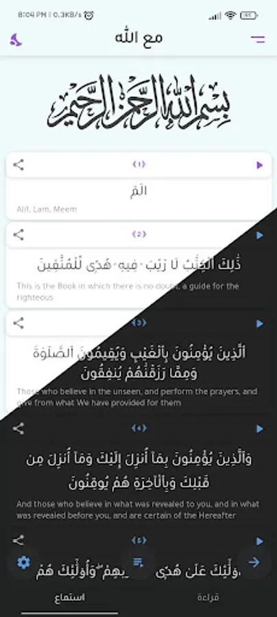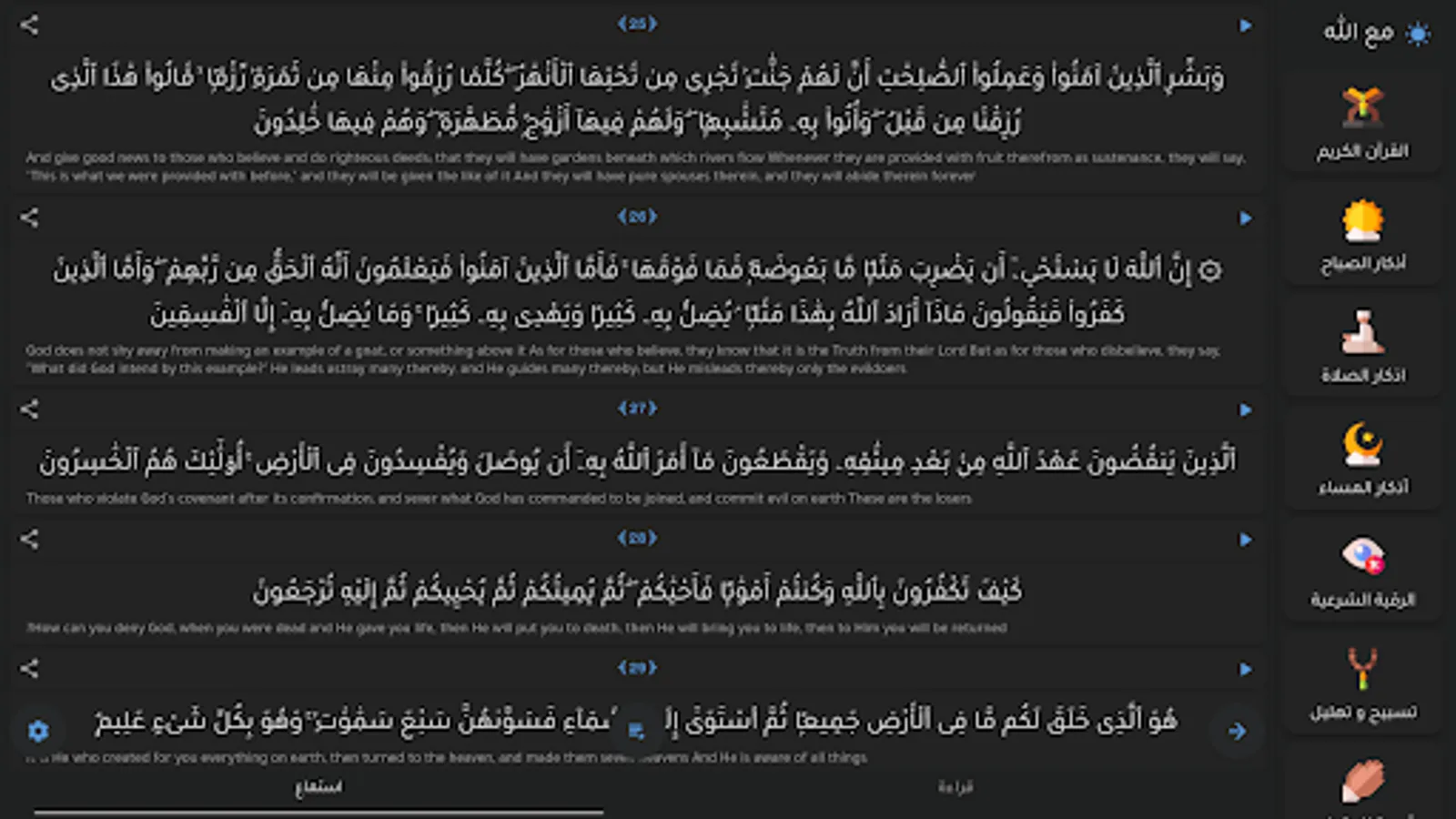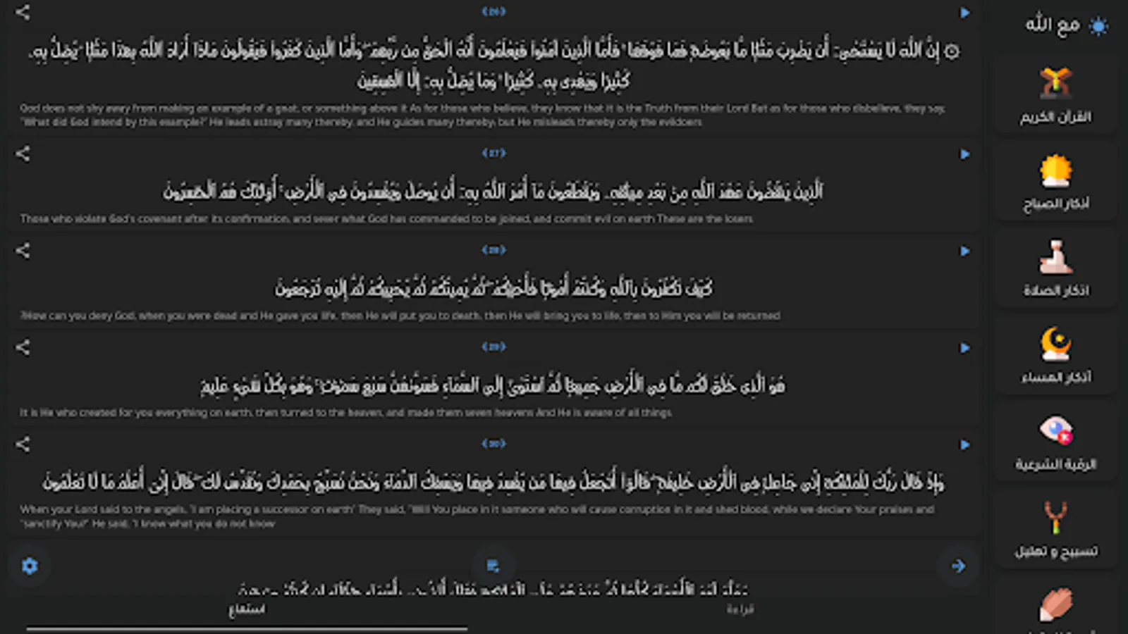 تطبيق للقران الكريم و الاذكار مع واجهة مبسطة و الكثير من المميزات لتجربة قراءة افضل