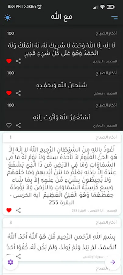 اضافة اذكار الي المفضلة لسهولة الوصول اليها