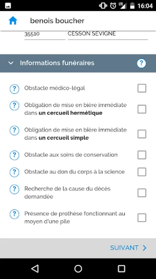 • In the 2017 experiment, the automatic sending of the administrative part in funeral operators (dep. 03, 06, 15, 17, 94) and the town halls of the place of death (Antibes, Aurillac, Creteil, La Rochelle Montlucon, Villejuif). In other cities, temporarily, the administrative part must be printed from the website