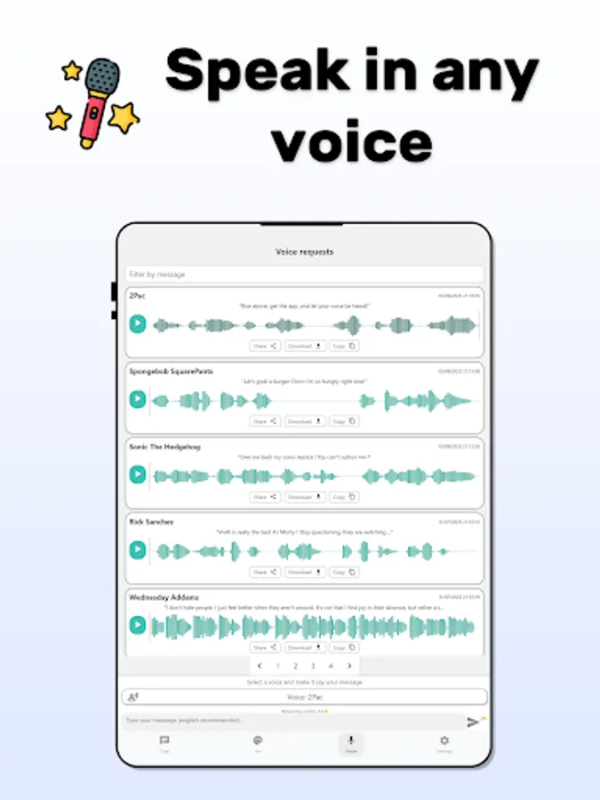 3️⃣ Audio Generation 🎧: Create custom audio clips in selected voices. Want to hear a message in the voice of Donald Trump or other famous personalities? Just type it in and listen as our AI performs a stunning voice rendition!
