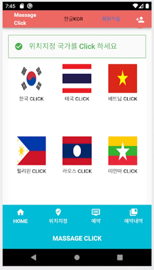 Massage Click is a pilot service targeting South Korea and Southeast Asia.