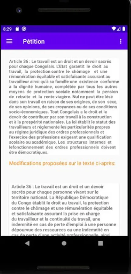 Anyone can deposit their signature in a petition which must be introduced to the public authority of the Democratic Republic of Congo.