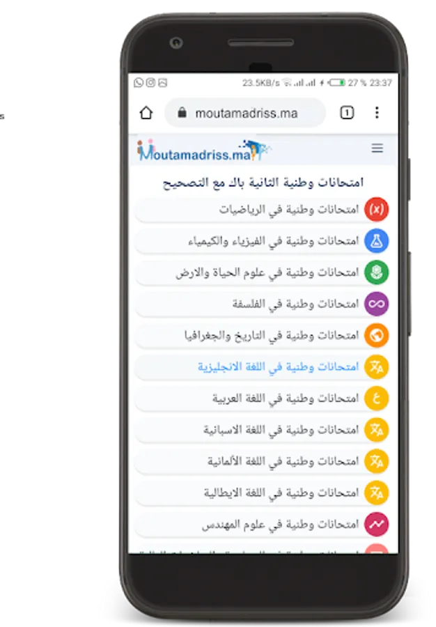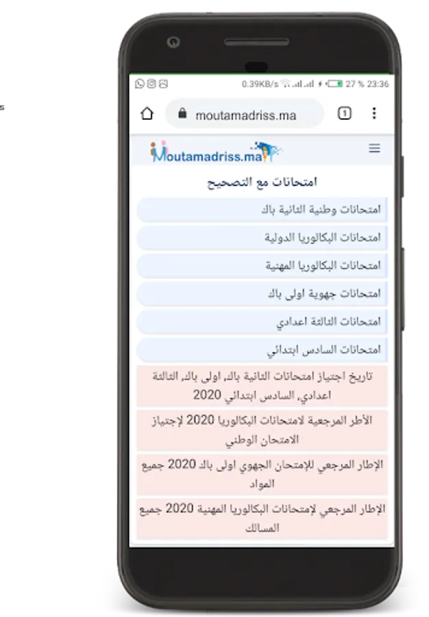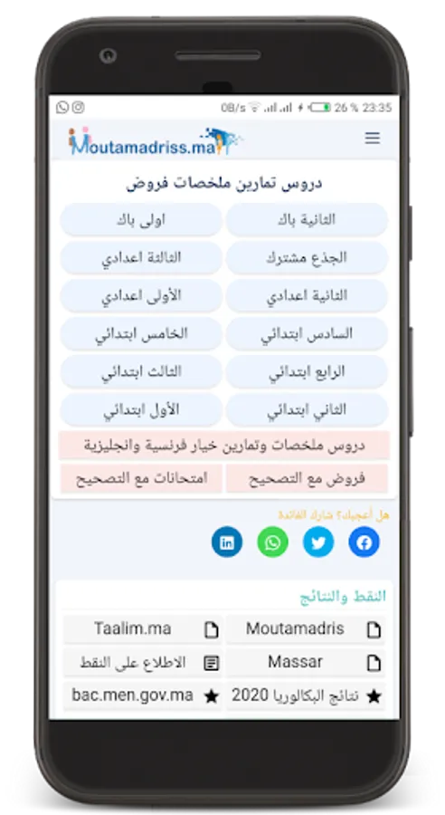 Disclaimer: The "moutamadriss" application is an independent application based on information provided by an external source. Users must be aware that this application does not represent any government agency or public or private institution, nor does it represent any association, and that all information and data. It is provided through this application for educational purposes and to facilitate access to knowledge, and we always encourage users to check the information from the official and recognized source to get the latest and most accurate information.