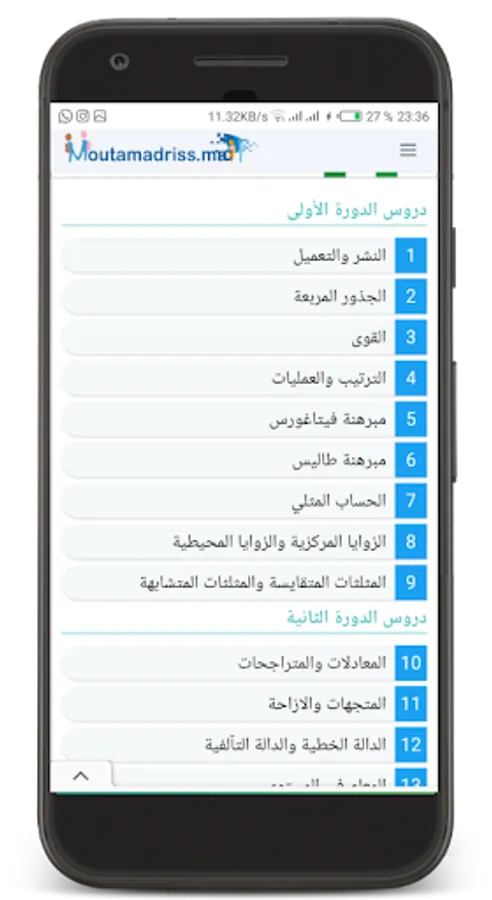 In the Mutamdars application, you will find all the lessons for all subjects in an organized manner - primary - middle school - secondary.