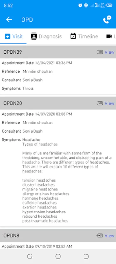 - OPD/IPD visits