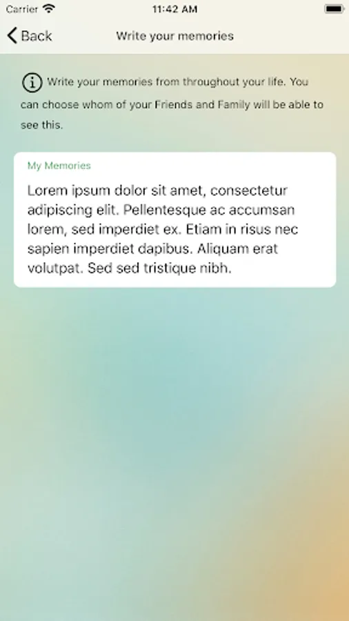 Memories - Write your memories from throughout your live. You can choose to share them with selected friends and family.