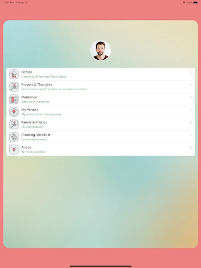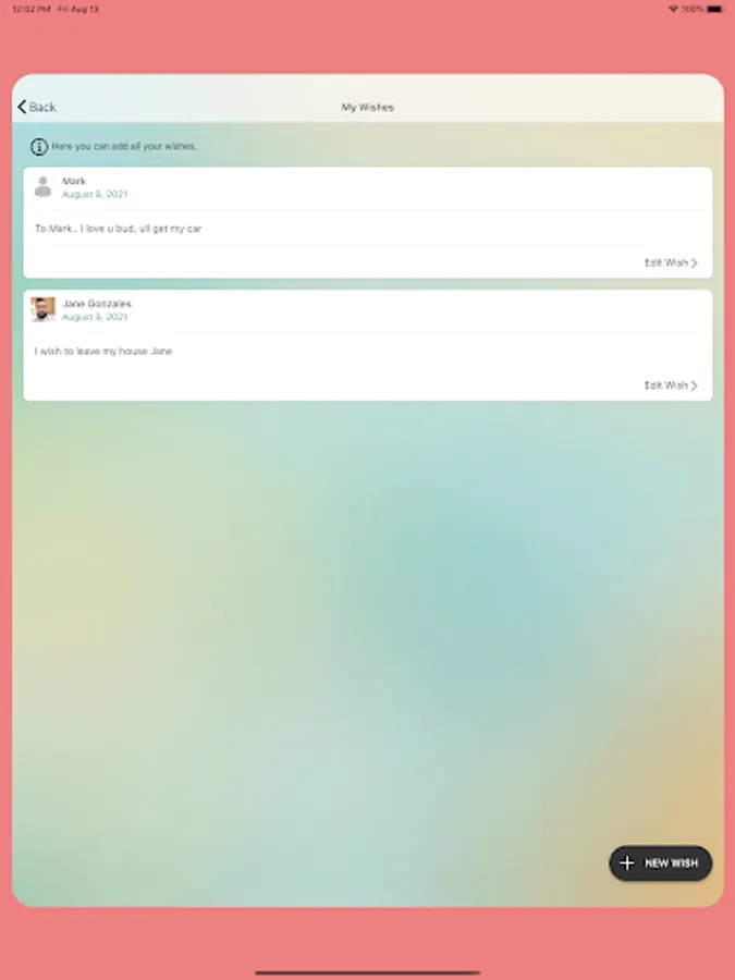My Wishes - Keep track of all your wishes, for your friends and family, upon passing away. Although this is not contractual binding, you can make your wishes knows to people around you.
