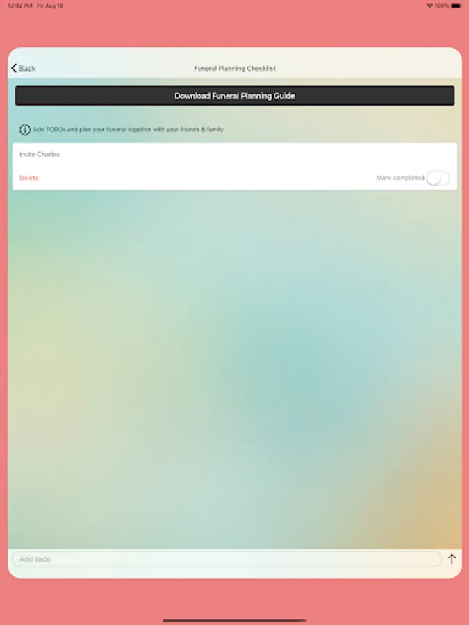 Planning Checklist - We all know its a true hassle to deal with a funeral. Use this feature to create todo lists, and invite others to help.