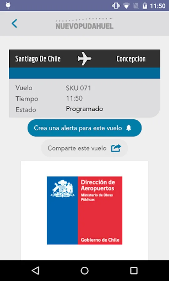 It is the only official application to the International Airport of Santiago, Comodoro Arturo Merino Benitez.