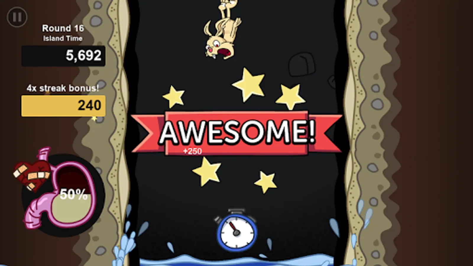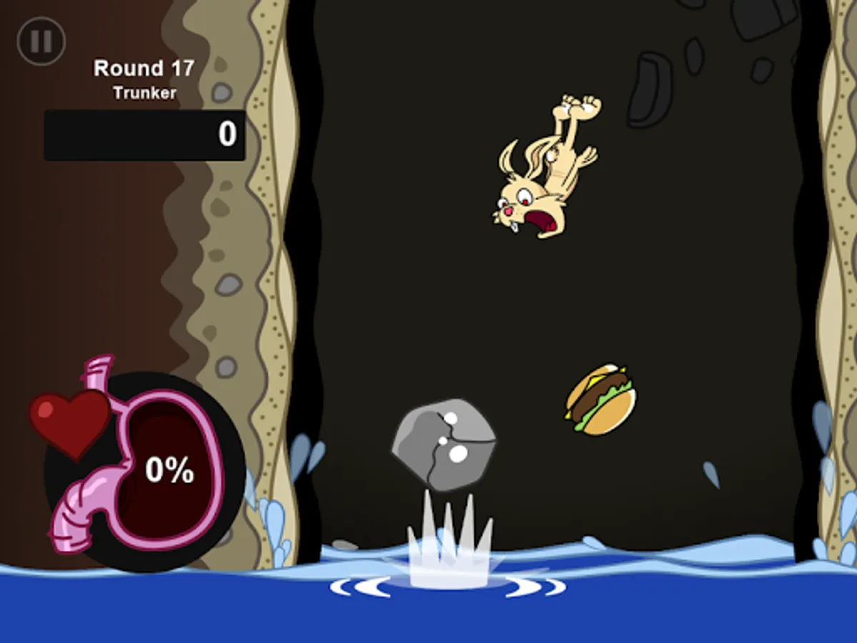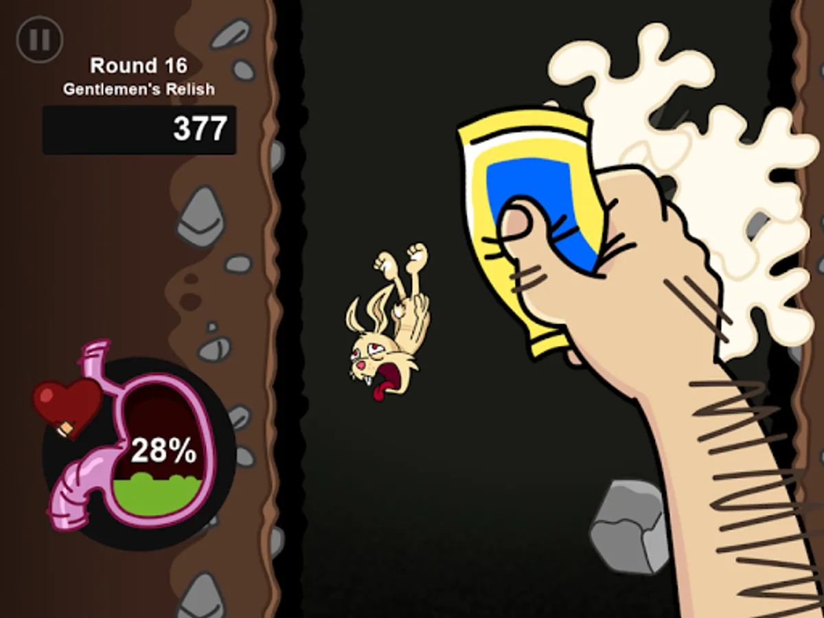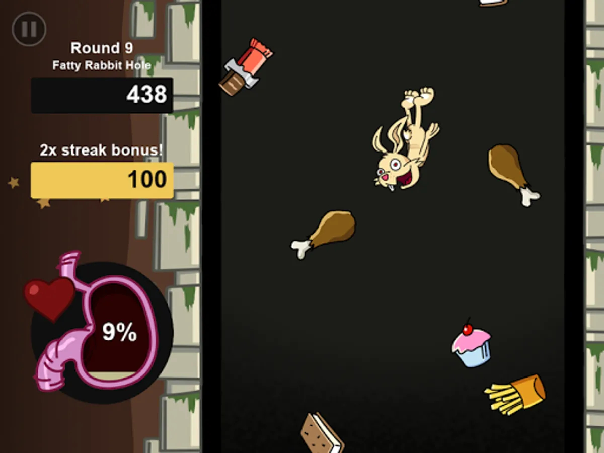 In Fatty Rabbit Hole, you're a rabbit falling down a hole, eating as much junk food as possible. Chowing down on disgusting healthy food, like vegetables, turns your stomach - and if you puke, you'll lose progress toward completing the round - so try not to blow chunks!