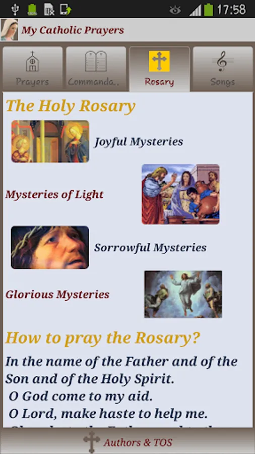 It also includes the complete rosary with all the prayers and the mysteries (Joyful, Luminous, Sorrowful, Glorious).